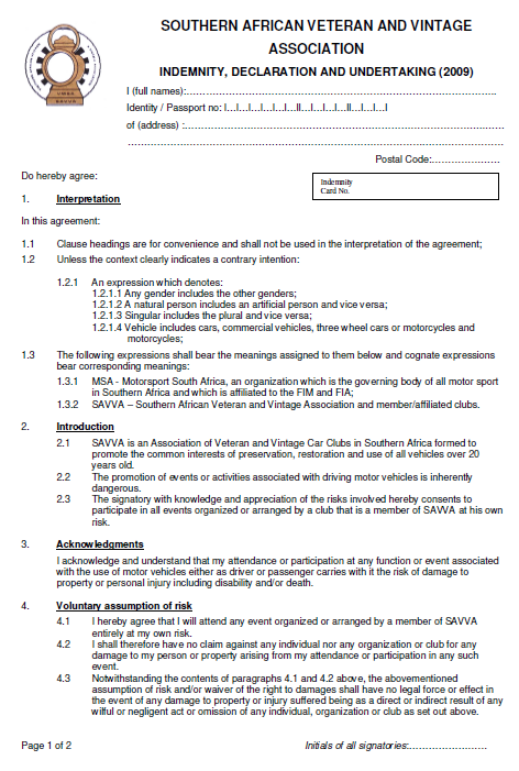 One application form is required per family, includes school going children. Each family member must complete a SAVVA indemnity form.